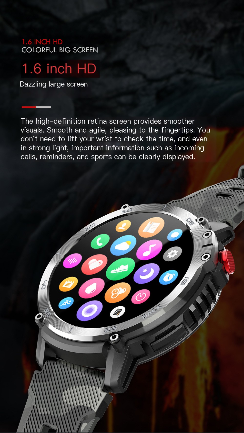 C22 Smartwatch 1.6" Bluetooth Music Waterproof 3ATM