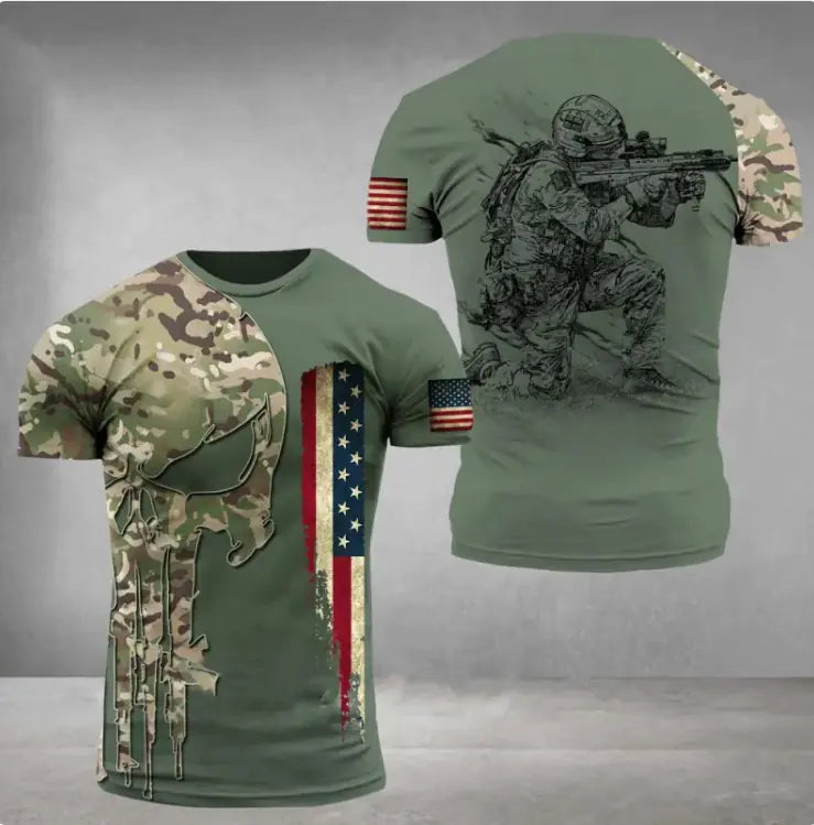 dd a bold, rugged touch to your wardrobe with the Military Printed 3D T-Shirt, a perfect blend of street style and comfort. Whether you're hitting the streets or relaxing, this short-sleeve men's top brings style and attitude.
